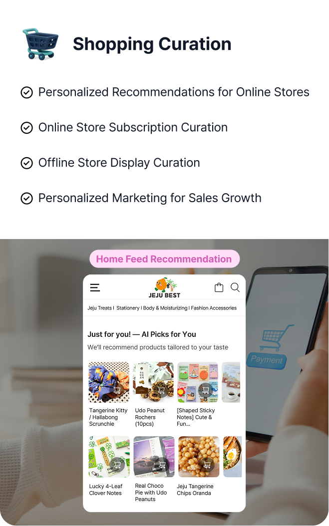 TasteQ’s hyper-personalized AI reflects individual customer preferences by recommending tailored products directly on the home screen—capturing attention from the very first moment and driving higher revisit rates.