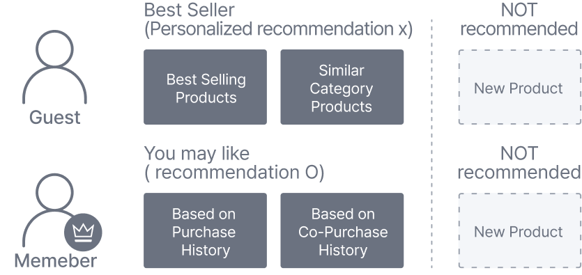 • For Guest users : Unwanted Items or Products Recommended • For Member users : Repeated Recommendations of the Same or Similar Items |