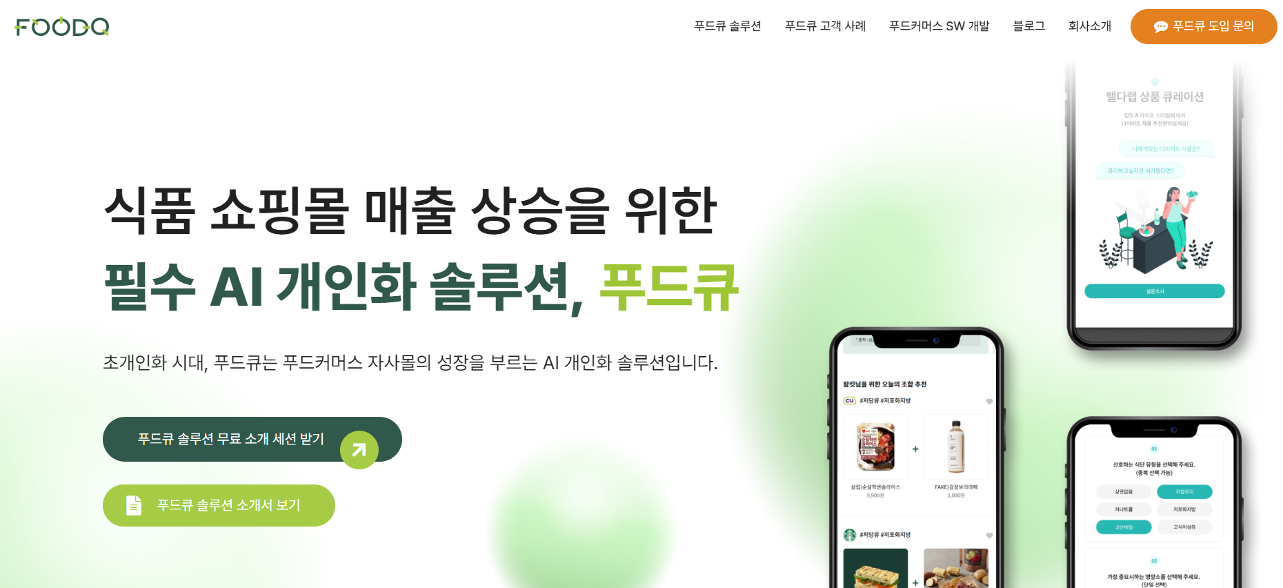 푸드큐는 입맛 분석 AI 기술로 소비자의 입맛, 필요영양소, 상황에 맞는 가공식품이나 식단을 맞춤 추천해 온라인 환경에서의 개인화된 쇼핑 경험을 제공한다.
